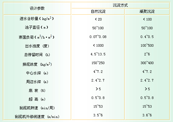 二、間歇刮泥:自然沉淀時為800~100kg/m3,投加聚丙烯酰胺絮凝劑時為600~800kg/m3。