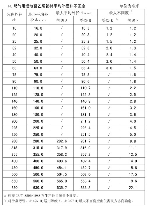 埋地燃?xì)庥镁垡蚁≒E)管材尺寸及公差: